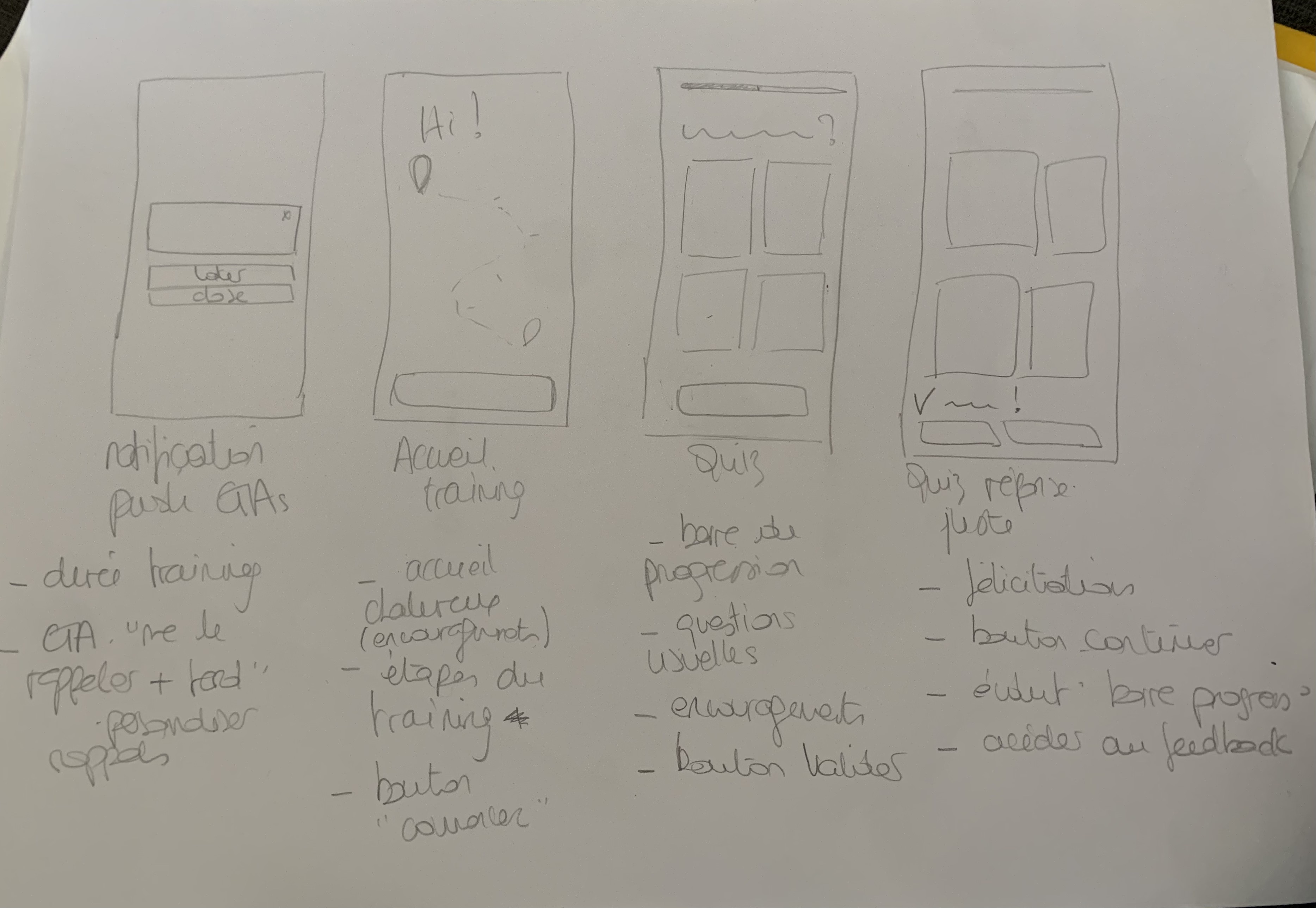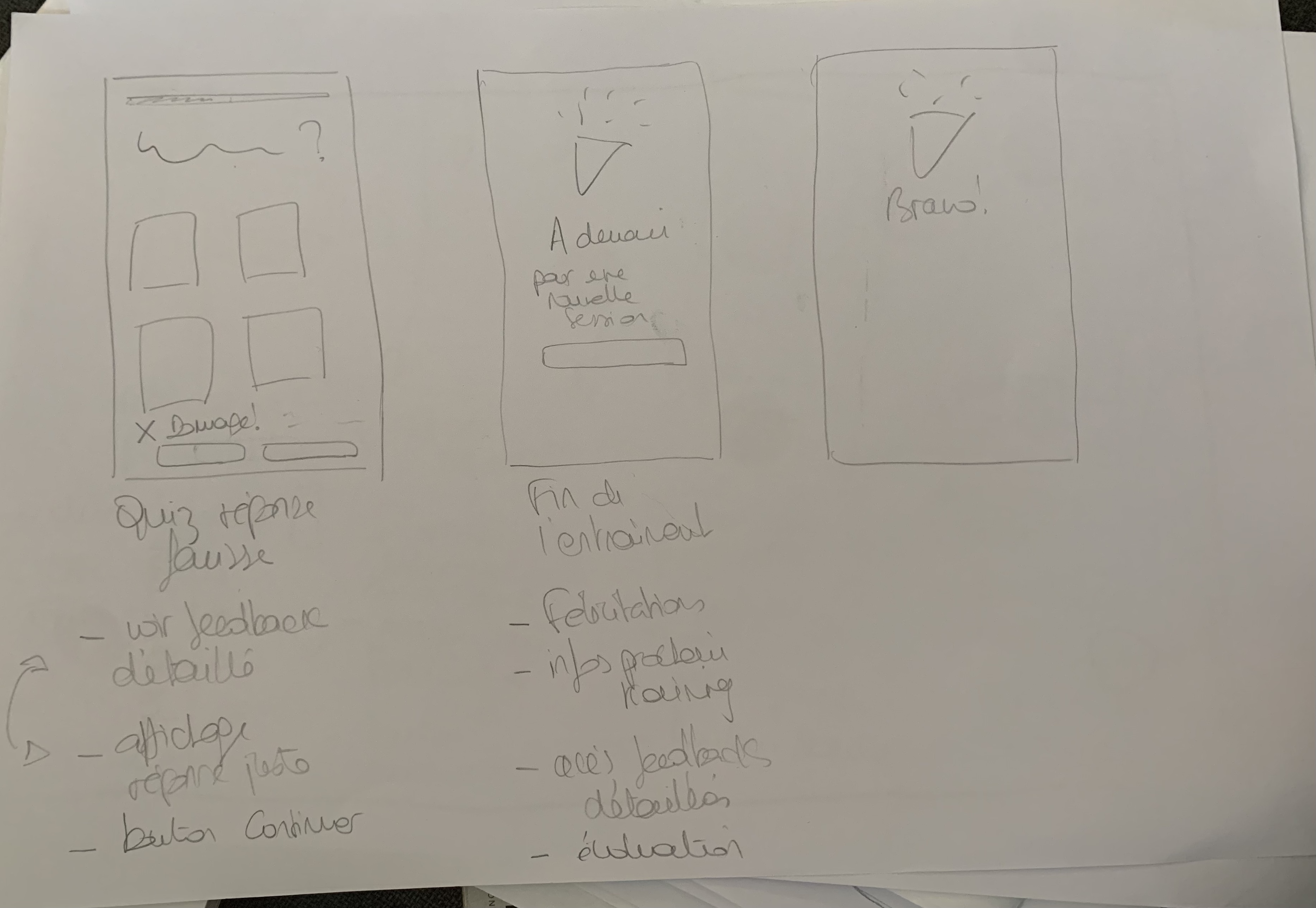 Je conçois ensuite un user flow et jette sur le papier mes premières idées de maquette.